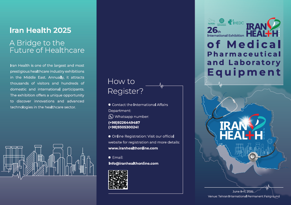 بیست و ششمین نمایشگاه بین المللی Iran Health 2025 در تاریخ 18 الی 21 خرداد 1404 در محل دائمی نمایشگاه بین المللی تهران برگزار می‌گردد.